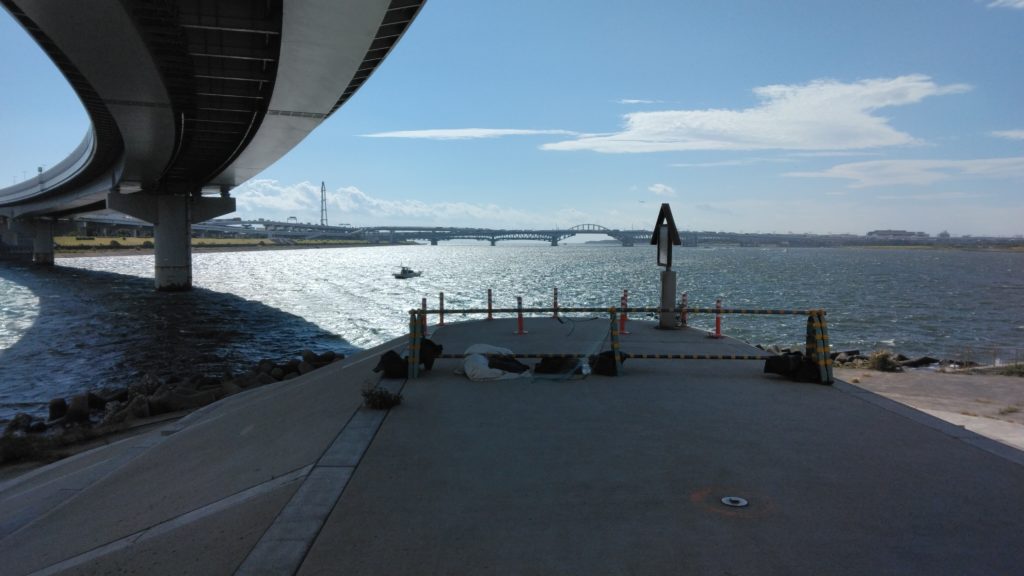 上平井水門から約8kmで河口に到着しました。ここから少し戻り葛西橋を渡り、約2kmの歩くと東京メトロ西葛西駅に到着します。