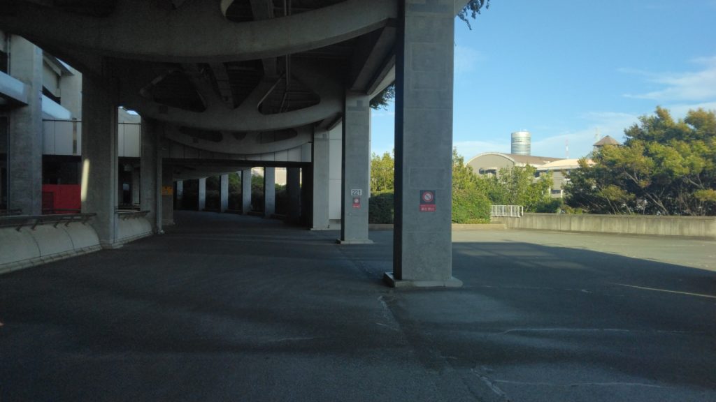 途中、遠くに新横浜プリンスペペの建物が見えました。1周すると940mになり、施設内にはコインロッカー、シャワーブース、食事できる場所やカフェもあり、利便性が高いです。
