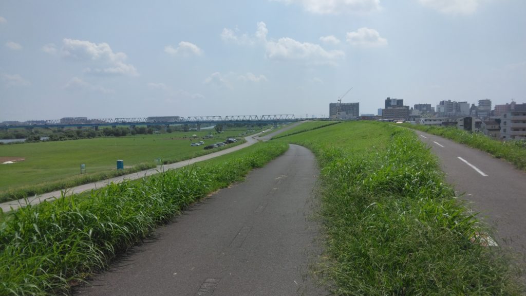柴又公園に到着しました。おそらくこの辺りが柴又100Kウルトラマラソンの会場かと思われます。全体的にマラソンのコースとしてはかなり道幅も広くストレスなく走れるかと思います。ただし柴又100Kは例年5月に開催されていることから晴れると日除けの場所がほとんど無くかなり暑くなるのではと思いました。