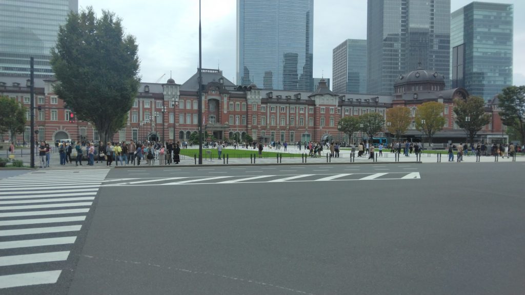 12時46分 東京駅に到着。 丸の内方面へ徒歩で移動しました。先頭が到着するまで、まだ30分近くありますが、既に沿道はどこも、人でごった返していました。
