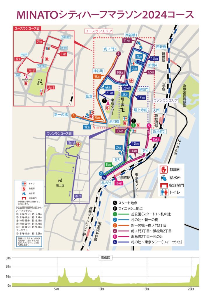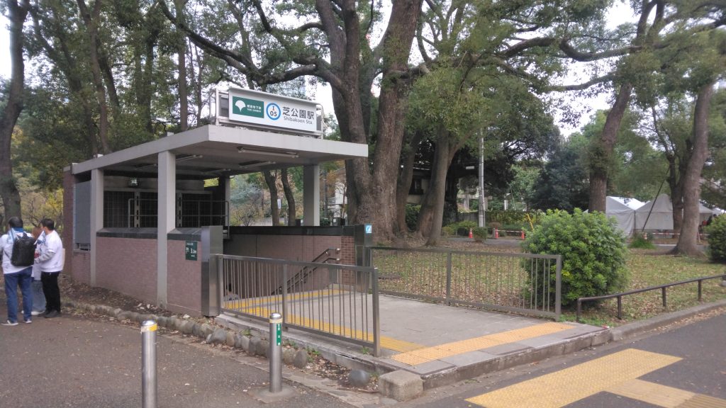 最寄りは都営三田線「芝公園駅」A4出口から1〜2分でマラソン会場に到着しました。