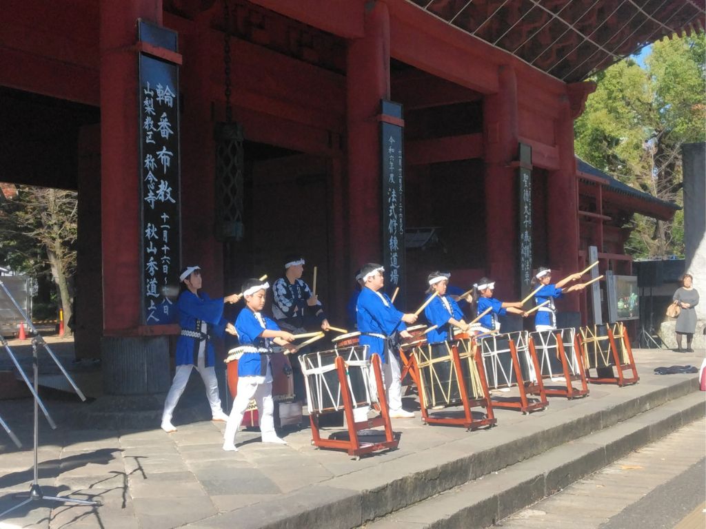 途中、増上寺前の太鼓に励まされ…