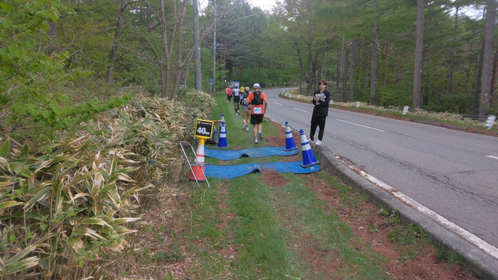 ひたすら長〜い下りを進んでいきます。筆者は下りが苦手なので、他のランナーに次から次へと抜かされてしまいます😢