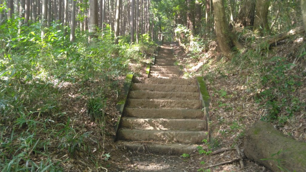14時10分 登山開始早々に階段があります。ひたすら登って行きます。