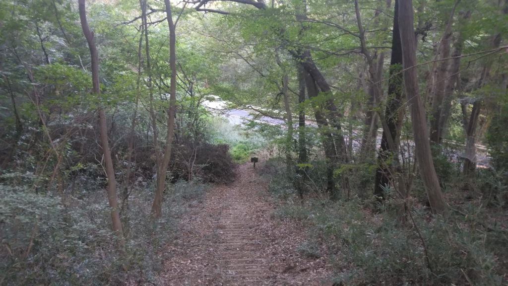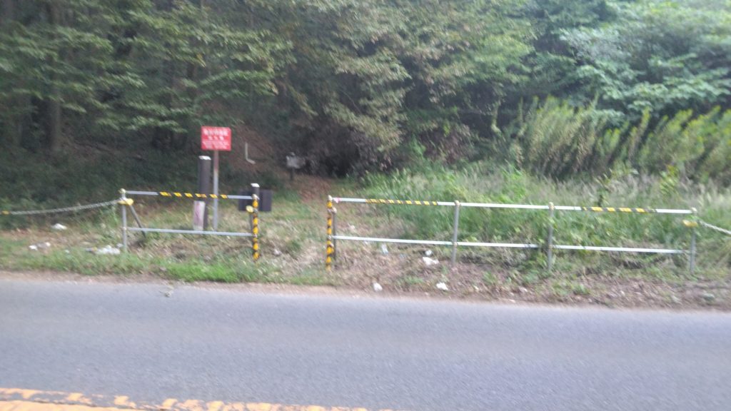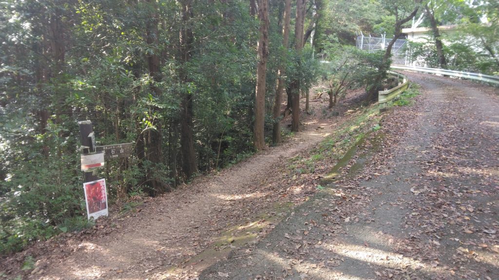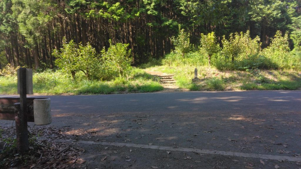 15時01分 一旦車道に合流しますが、すぐ左側に晃石山に向かう小道があるので、そちらを進みます。