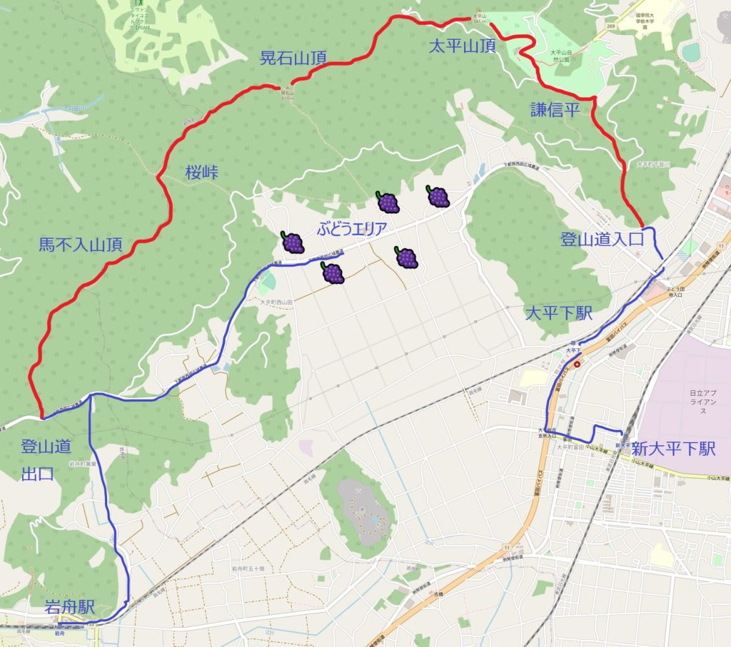本日のコースとなります。太平山、晃石山、馬不入山の縦走となります。