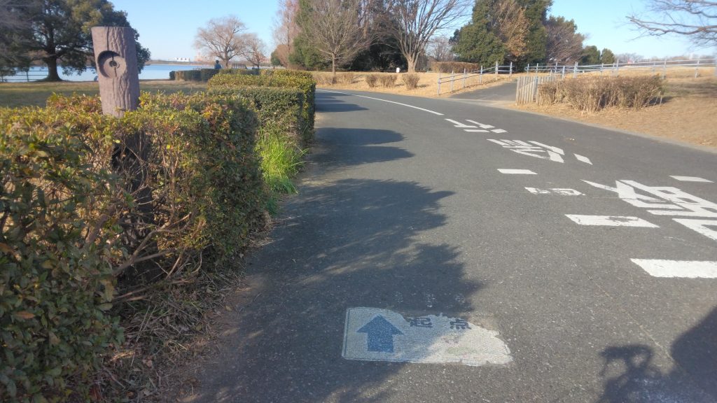 バーベキュー広場近くの駐車場に車を止めて、マラソンコースへ向かいます。案内板を見ると、彩湖を1周するコースとなっていて、4.7kmあります。