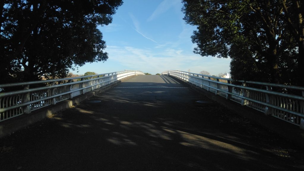 視界が開け、前方左手に管理橋が見えてきました。管理橋を渡れば、1周走破となります。