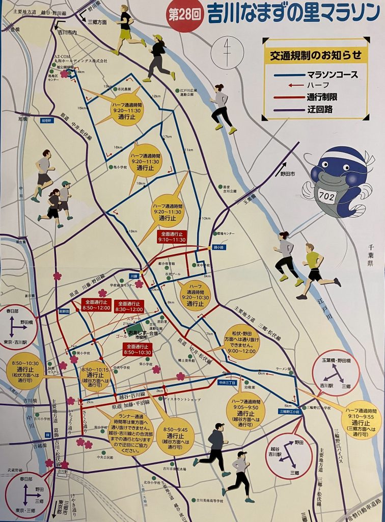 ハーフは吉川市内の北側を大きく巡るコースとなっています。アップダウンは、ほとんど無いので、自己ベストを狙うのに適した大会と言えそうです。