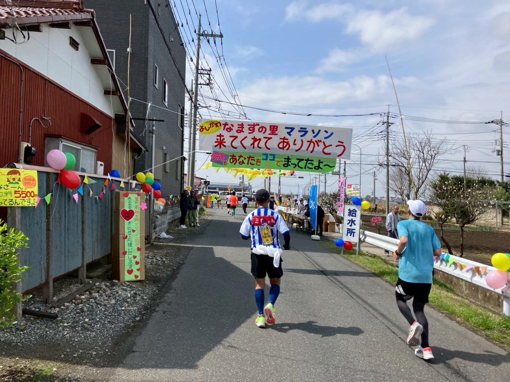 14km地点通過。この辺りは、野球場があり、野球場の外側を取り巻くコースとなっています。桜の木も植えられていて、間近に花見🌸をしながらRUNできました。和太鼓の応援もあり感動!